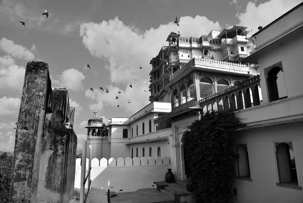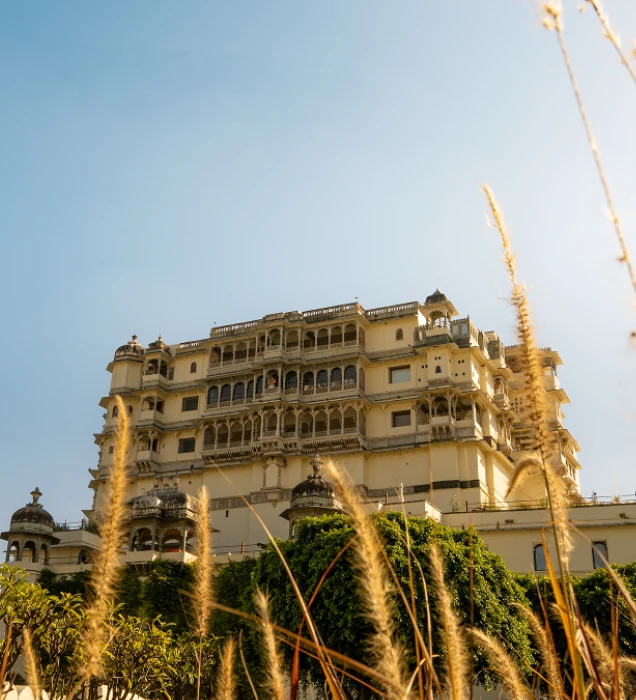 Enter a world of Marwari horse murals, mirrored ante-chambers, courtyards, arches, turrets, swings, marble bowls of flowers and, come night, a thousand candles and stars.
