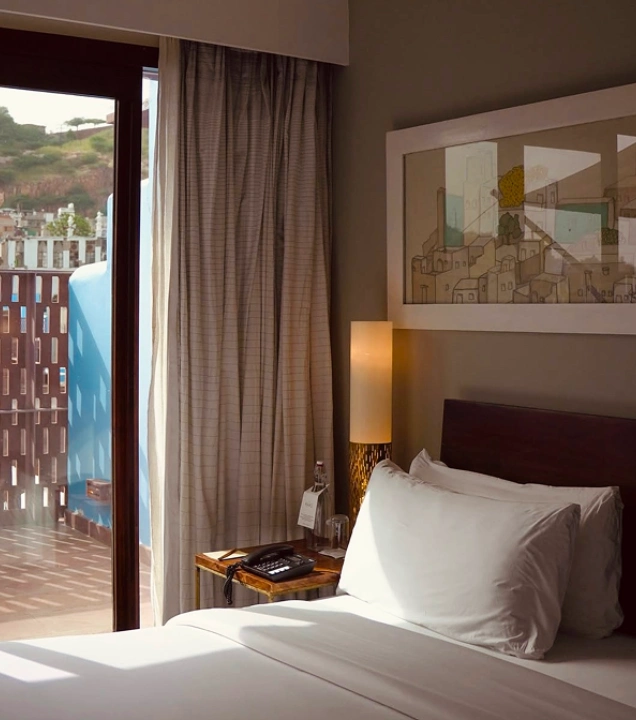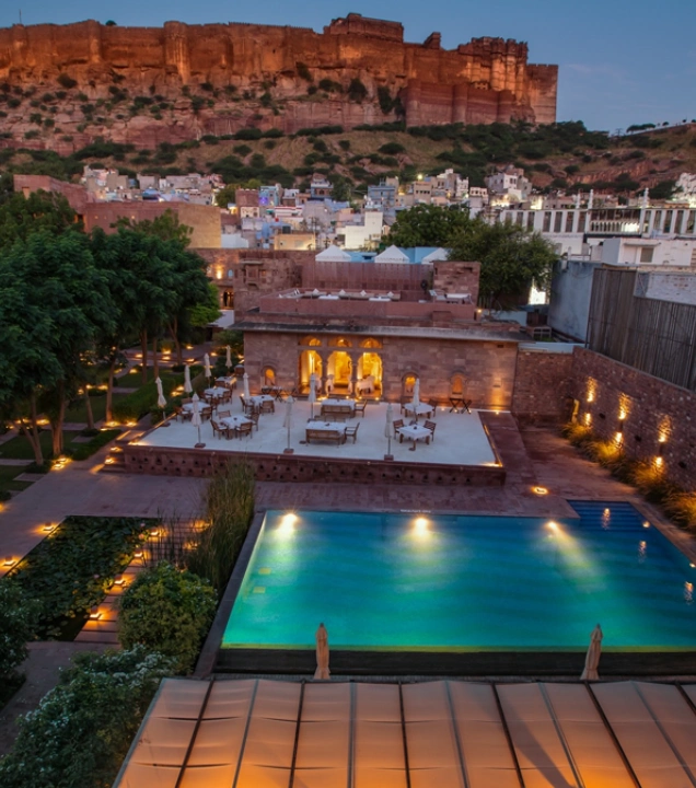 RAAS Jodhpur looks out at Mehrangarh, an awe-inspiring 15th-century fort looming 400 feet above the Jodhpur skyline.