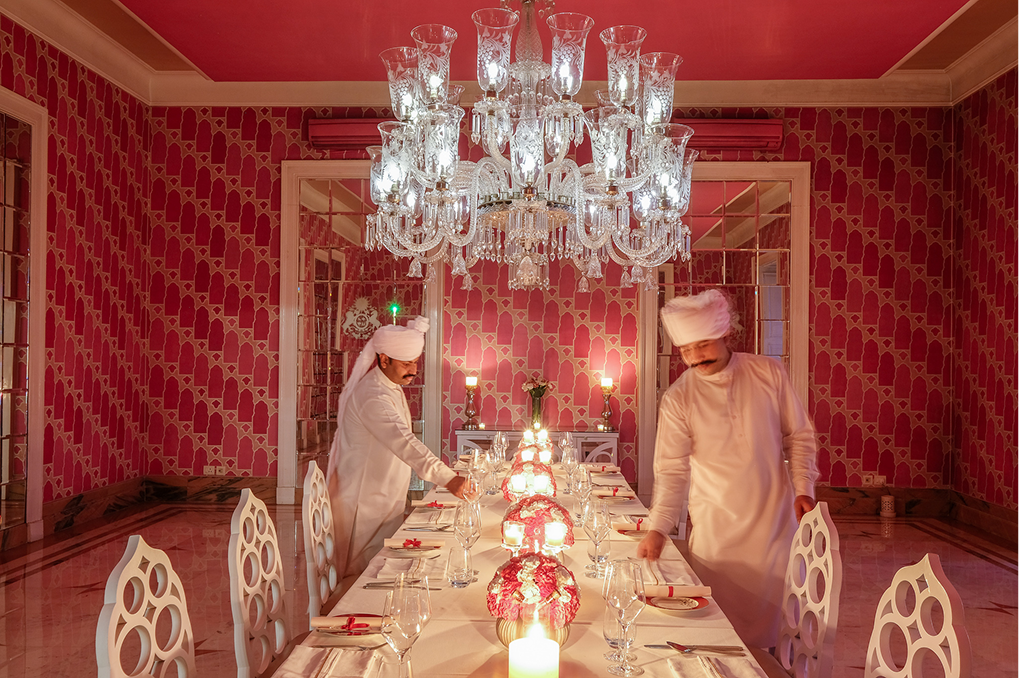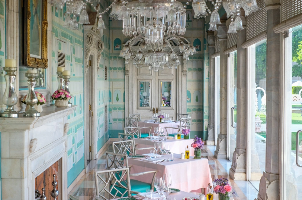 As an ode to the ‘Pink City,’ 51 Shades of Pink is a vibrant restaurant with mirrored interiors and a beautiful play of light. It’s the perfect setting for a celebratory lunch or dinner and offers a seamless connection to the palace’s regal gardens and lawns.