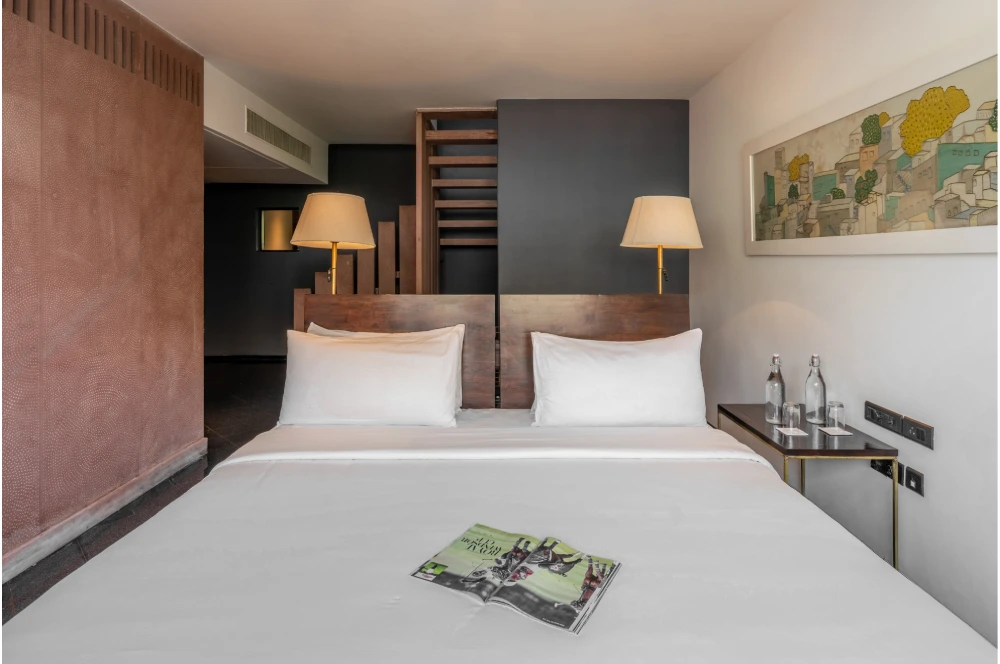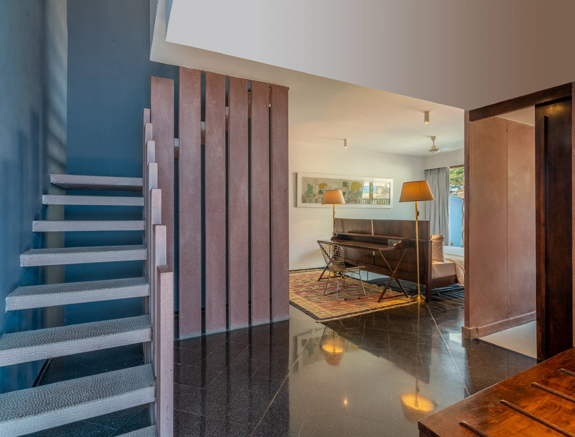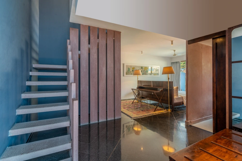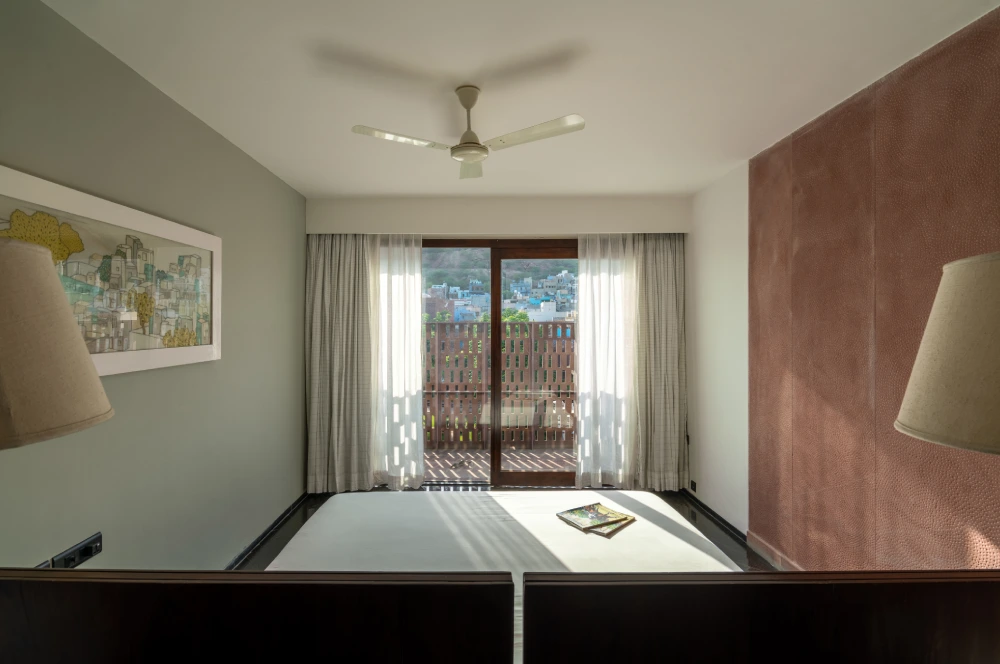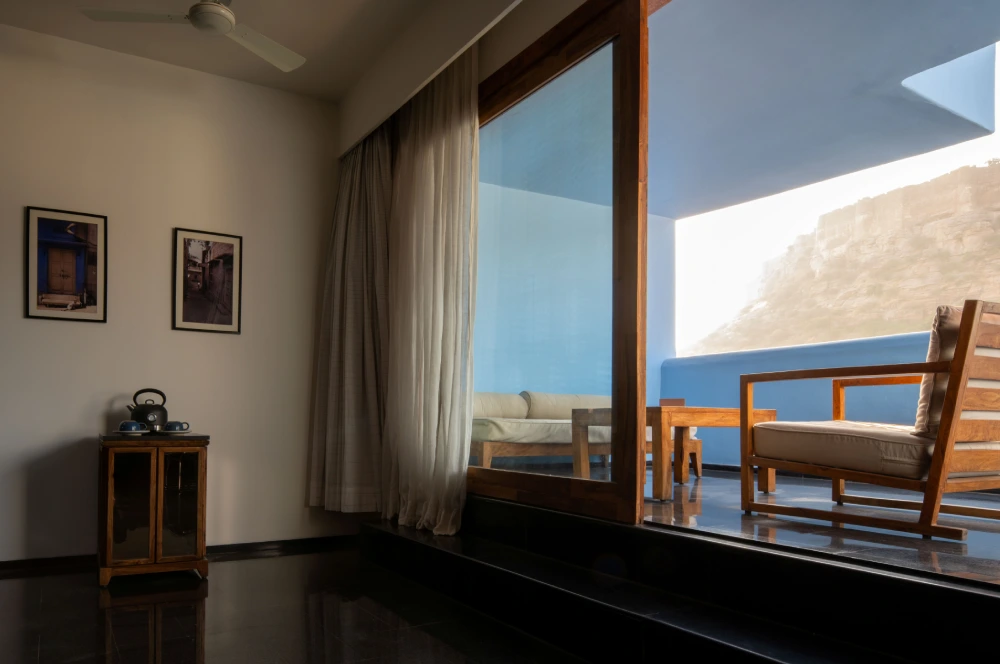 Our four Duplex Suites are located in the modern block of the hotel. All have private balconies, where a covered seating area offers protection against both sunshine and rainfall. These have spectacular views of Mehrangarh Fort and the jewel-bright houses clustering around the steep hill. With its 740 square feet, the Duplex Suite is luxuriously spacious: consisting of a separate duplex bedroom and living room, this suite is the perfect choice for large groups or families to relax and unwind in the Blue City.