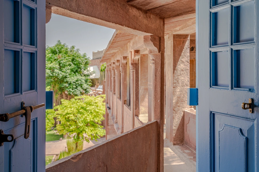 Views of Mehrangarh Fort and landscaped hotel gardens