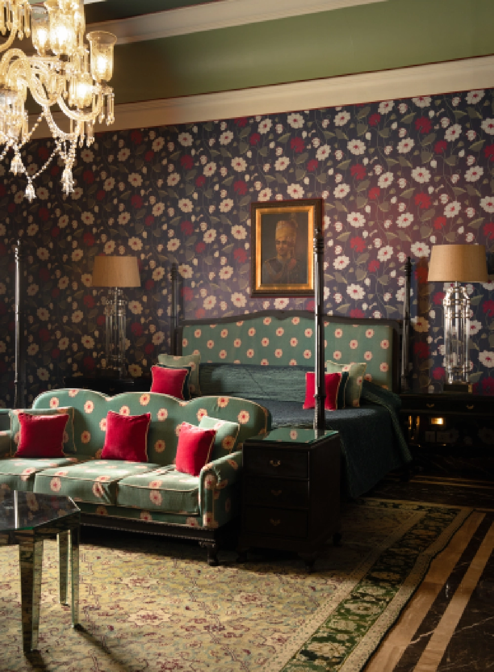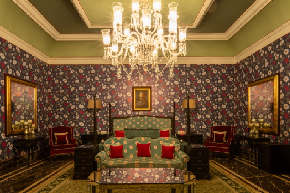 This 3126 SQ FT lavish apartment is a perfect fit for Royalty. It used to serve as the private suite of the two Maharajas, Sawai Man Singh II and his son Sawai Bhanwani Singh. When you enter your apartment, you encounter a private entrance hall filled with curios from the past. The apartment comprises of a living area, separate bar, a drawing room that opens out to a private terrace that’s perfect for entertaining. It also holds a private dining room perfect for eight people, adorned with portraits of Jaipur’s Maharajas. The main bedroom has an adjoining marble bathroom with a bathtub, shower and twin basins. The entire room expresses old-world charm but is equipped with state of the art technology to provide you with a comfortable stay.