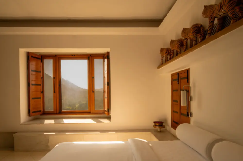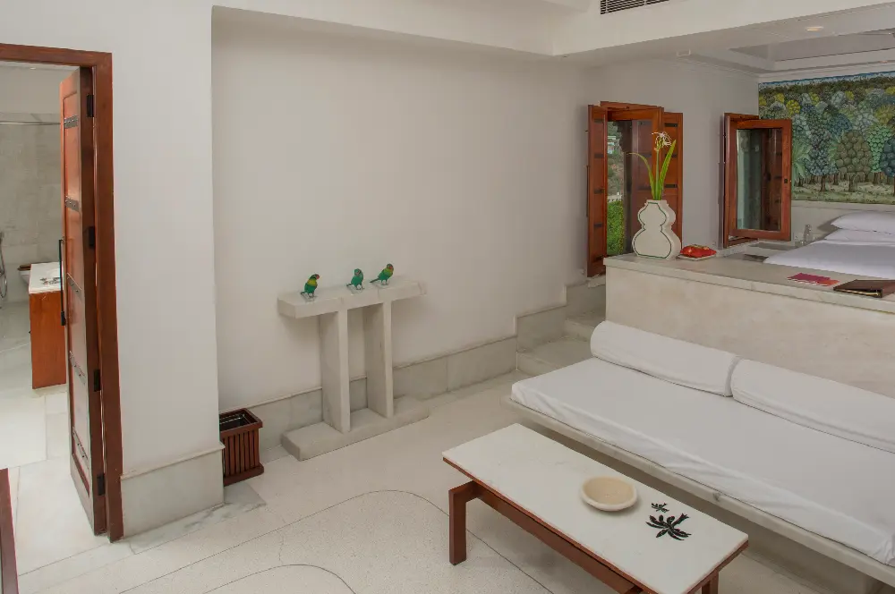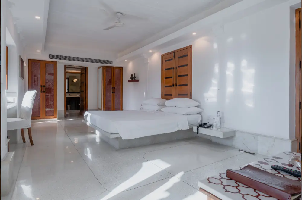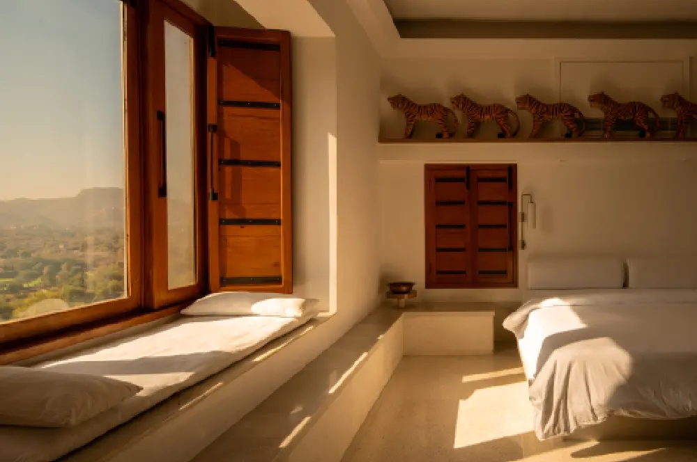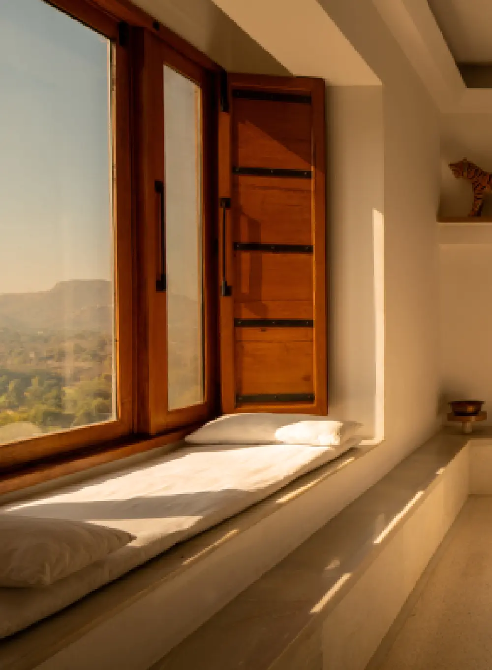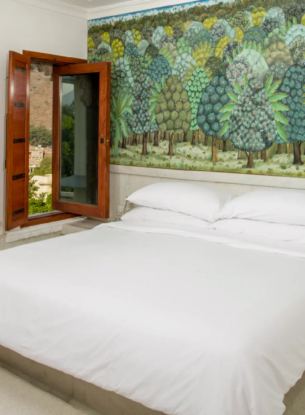 Keeping in touch with Devigarh’s aristocratic roots, the Palace Suites offer true luxury. Every suite has a unique design and their marble interiors are adorned by combinations of semi-precious stones. The pieces of modern artwork showcase the quality of the locals’ handicraft. Matched in grandeur on the outside, guests are able to enjoy glorious views over the fields and mountains of the Rajasthani countryside and the quintessential village of Delwara. The tranquil aangans [courtyards] adjoined to these rooms are a final flourish of regal magnificence that you will not want to leave behind.